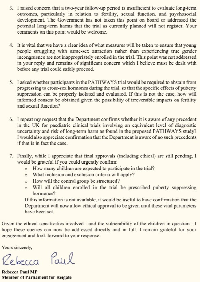 It would no doubt be helpful to have more information on the effect of these drugs on young “gender dysphoric” children, but this is an appalling way to go about it. Giving a drug that we know very well has powerful effects on a child’s development fails every moral test. It’s treating vulnerable children as guinea pigs. And we have thousands of children who went through this at the Tavistock Clinic, where no one bothered with follow-up data. This could surely be pursued.