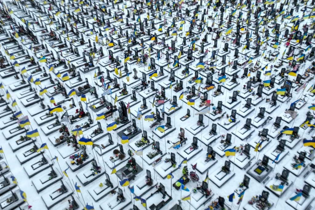 The graves of thousands of fallen Ukrainian military personnel in Kharkiv. [Chris MGrath/Getty Images]