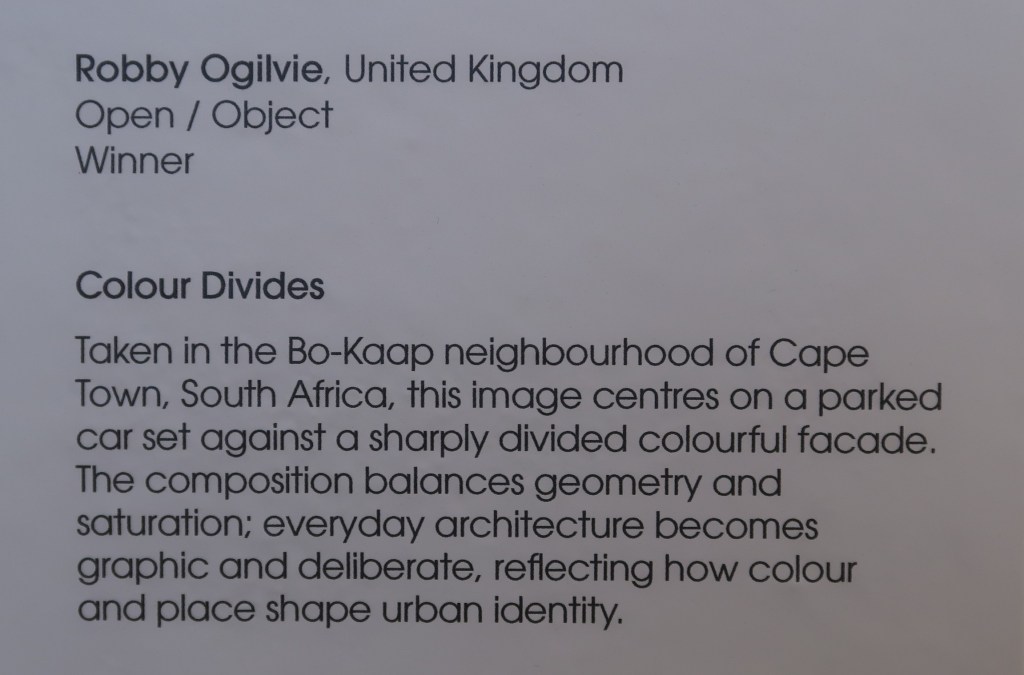 Interesting to know where the shot was taken, but really – “reflecting how colour and space shape urban identity”. Do they have to come up with this style of constipated intellectualism to justify the image? It’s just a great shot, beautifully composed. Any decent photographer coming across that would say “wow” and whip their camera out with out a moment’s hesitation. And the car colour mirroring the sky – never mind whether or not it’s been cleaned up with a touch of the old colour enhancement, it’s still great.